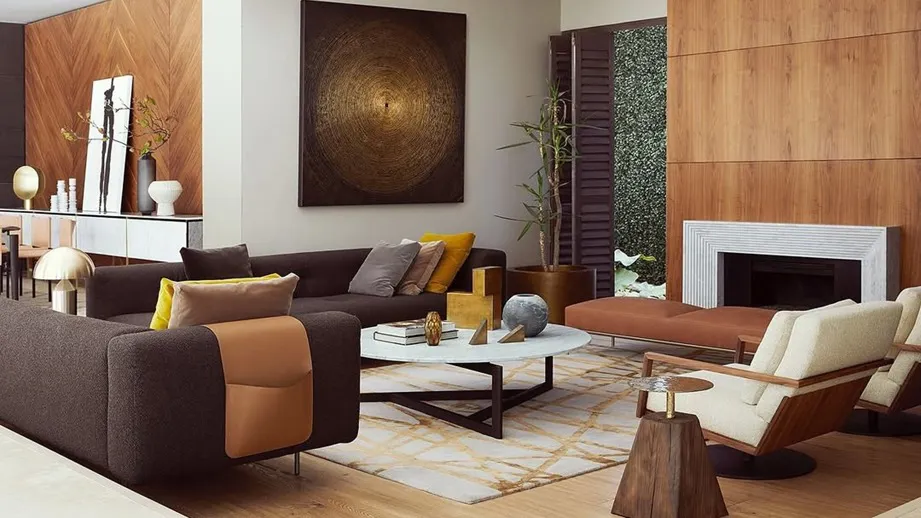- رنگهای گرم و خاکی: جایگزینی طوسی و سفید سرد با رنگهای تراکوتا (آجری)، شکلاتی (مانند رنگ سال Mocha Mousse)، سبز زیتونی، بژ و کرم. این رنگها حس آرامش و گرما را القا میکنند.