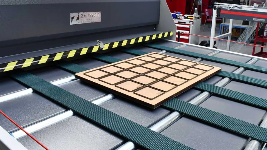 - دستگاه لمینت (Laminator): برای دستیابی به کیفیت چاپ بسیار بالا (مانند بستهبندی کالاهای لوکس)، از این دستگاه استفاده میشود. در این روش، طرح مورد نظر ابتدا روی یک مقوای نازک با کیفیت بالا (چاپ افست) چاپ شده و سپس این مقوا توسط دستگاه لمینت روی ورق کارتن کنگرهدار چسبانده میشود.