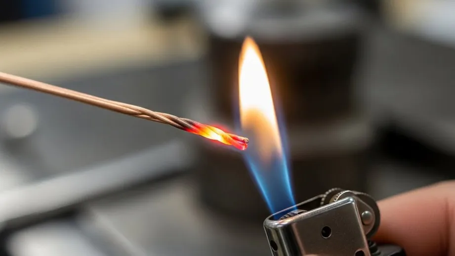 - تست حرارت: مس در برابر حرارت فندک سیاه نمیشود و تغییر شکل نمیدهد، اما سیمهای تقلبی به سرعت پودر میشوند.