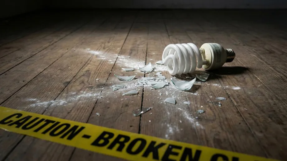 به دلیل وجود بخار جیوه، فوراً پنجرهها را باز کنید و اتاق را برای ۱۵ دقیقه ترک کنید. سپس بدون استفاده از جاروبرقی (برای جلوگیری از پخش ذرات)، خرده شیشهها را با دستکش و چسب پهن جمعآوری کرده و در ظرفی دربسته دور بریزید.
