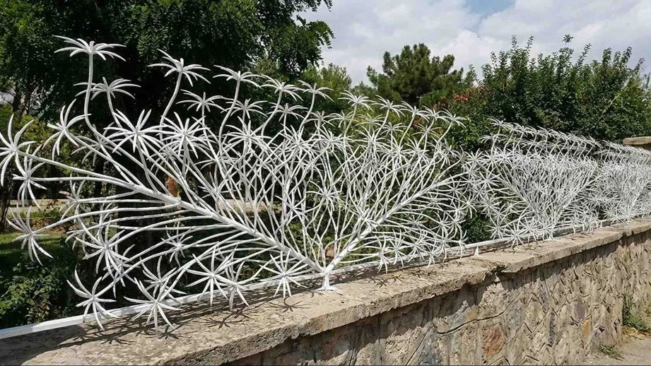- مزیت امنیتی و بصری: این حفاظ قابلیت گسترش از مرکز را دارد، یعنی میتوان آن را در هر ارتفاعی تولید کرد بدون اینکه طرح به هم بریزد. در هر متر از این حفاظ، تعداد بسیار زیادی شاخه تیز (غنچه) وجود دارد که آن را بسیار امن میکند. معمولاً به صورت دو رنگ رنگآمیزی میشود (مثلاً سفید و طلایی) که جلوهای سلطنتی به نمای ساختمان میبخشد.