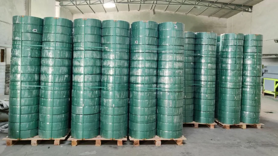 مزیت کلیدی این تسمه، «بازیابی کشش» فوقالعادهی آن است. این تسمه مانند یک کش بسیار محکم عمل میکند؛ تحتفشار کش میآید، ضربههای ناگهانی در حملونقل را جذب میکند و اگر بار کمی فشرده شود، تسمه همچنان کشش خود را حفظ کرده و سفت باقی میماند. علاوه بر این، برخلاف تسمه PP که در برابر نور خورشید ضعیف است، تسمه PET مقاومت عالی در برابر اشعه ماوراءبنفش (UV) و تغییرات دما دارد. به همین دلیل، صنایع سنگین مانند کاشی و سرامیک، الوار، و پالتهای سنگین نوشیدنی به سرعت در حال مهاجرت از فولاد به PET هستند.