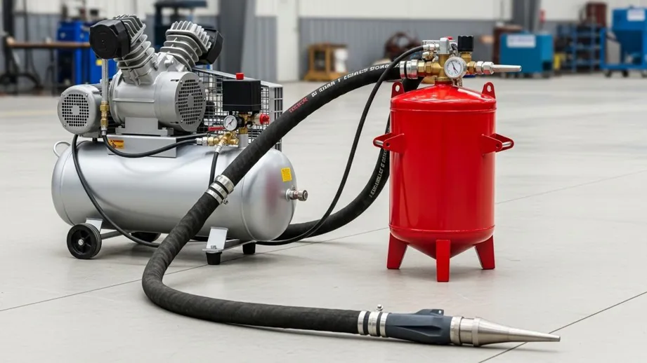 - شلنگ و نازل: شلنگهای ضد سایش، مخلوط هوا و ساینده را منتقل میکنند و در انتها، نازل این جریان را متمرکز و شتاب میبخشد.