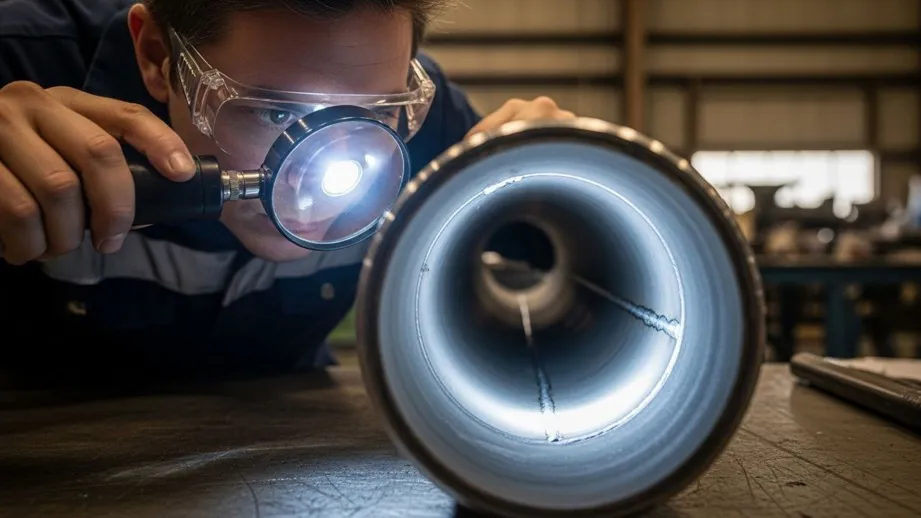 - بررسی سطح داخلی: پنهان کردن درز در سطح خارجی آسانتر است. سطح داخلی لوله را به دقت بررسی کنید؛ وجود هرگونه خط یا برآمدگی طولی میتواند نشانهی درز جوش باشد.
