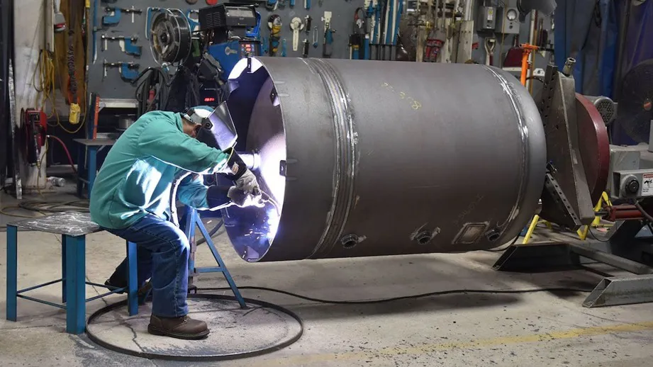 - جوشکاری: حساسترین مرحله ساخت است. جوشکاران باید دارای گواهینامه صلاحیت (WQT) باشند و فرآیند جوشکاری طبق دستورالعملهای تایید شده (WPS) انجام شود. استفاده از جوشکاری زیرپودری (SAW) برای درزهای طولی و محیطی معمول است.