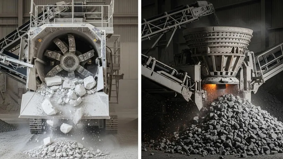 بنابراین، تنوع در انواع دستگاه سنگ شکن به دلیل نیازهای متفاوت در هر مرحله از خط تولید است. مرحلهی اول به قدرت «فشاری» محض برای شکستن سنگهای غولپیکر نیاز دارد، در حالی که مراحل بعدی بر اساس «ضربه» برای تولید محصول مکعبیشکل یا «سایش» برای تولید ماسه طراحی شدهاند.
