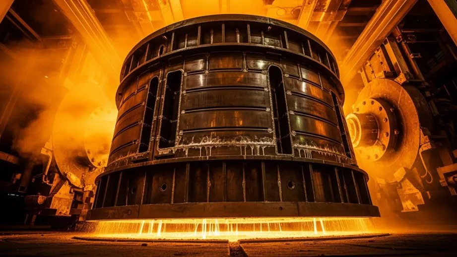 - حرارت و چرخش: قالب بسته شده و به داخل یک کوره بزرگ منتقل میشود. همزمان با اعمال حرارت، دستگاه شروع به چرخاندن آرام قالب حول دو محور عمودی و افقی میکند.
