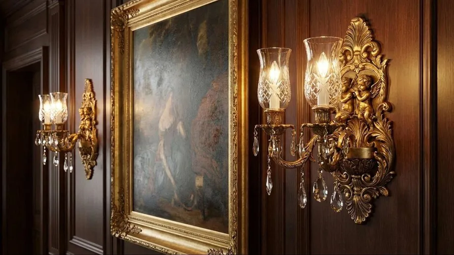 این مدلها ریشه در تاریخ دارند و یادآور شکوه عمارتهای قدیمی و قصرهای اروپایی هستند. چراغ دیواری کلاسیک معمولاً از بدنههایی با آلیاژهای ارزشمند مانند برنج، برنز یا زاماک با آبکاریهای طلا، نقره یا آنتیک ساخته میشود. شاخصه اصلی آنها تقارن، جزئیات زیاد در کندهکاری بدنه و استفاده از لالههای شیشهای یا کریستالهای آویز است. این چراغها اغلب به صورت جفت در دو طرف تابلوهای نفیس، آینههای کنسول یا در راهروهای هتلها و تالارها نصب میشوند و حس تجمل را القا میکنند.
