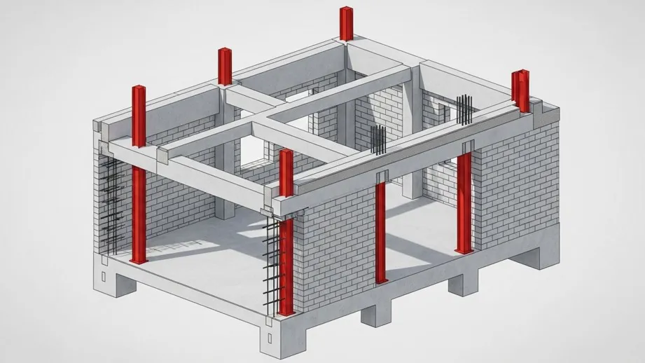 - وال پست قائم (عمودی): این نوع به صورت موازی با ستونها اجرا میشود و برای دیوارهایی با طول زیاد کاربرد دارد. طبق آییننامهها، اگر طول یک دیوار از ۴ تا ۶ متر (بسته به ضخامت دیوار و ویرایش آییننامه) بیشتر شود، استفاده از وال پست قائم الزامی خواهد بود.