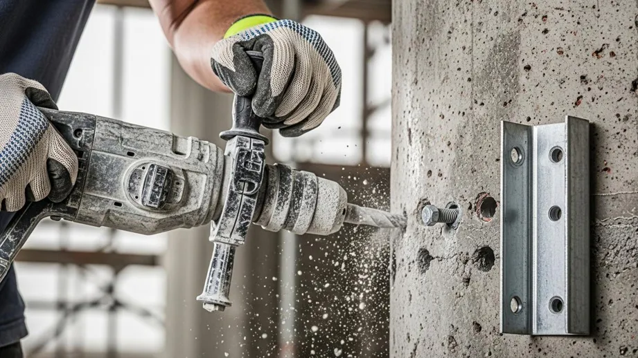 - در سازه بتنی: اجرا پیچیدهتر است. بهترین حالت، نصب صفحات اتصال (بیس پلیت) پیش از بتنریزی است. اگر این کار انجام نشده باشد، باید صفحات را با استفاده از رول بولت یا انکر بولت به بتن متصل کرد. استفاده از میخهای فولادی که با تفنگ هیلتی نصب میشوند، مطلقا ممنوع است، زیرا به بتن آسیب جدی وارد کرده و اتصال قابل اعتمادی ایجاد نمیکند.