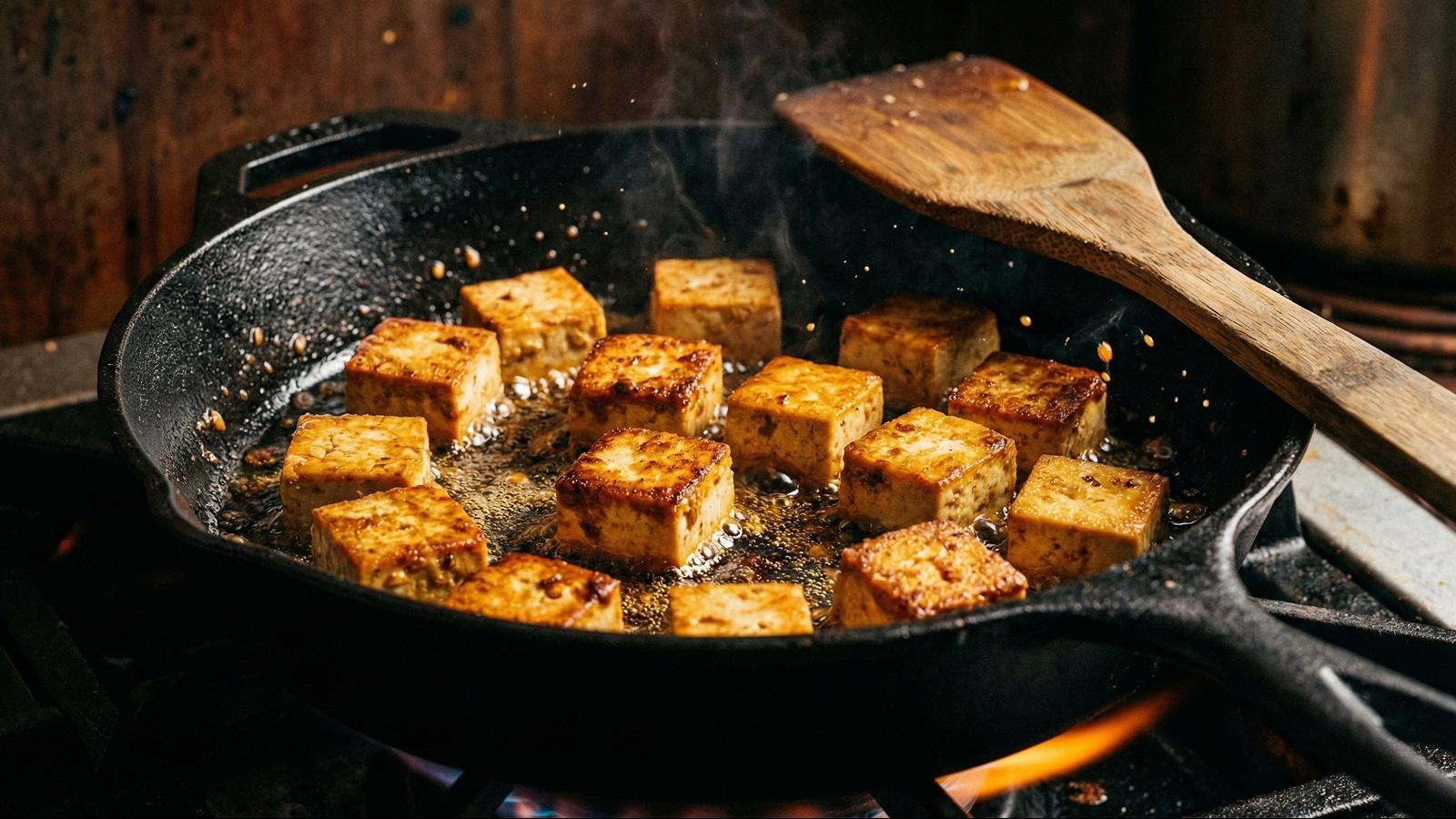 اگر میخواهید بدانید راز اصلی لذیذ شدن توفو چیست باید فرآیند مهم “پرس کردن خانگی” را یاد بگیرید. آشپزهای حرفهای پیش از شروع پخت، بلوک توفوی سفت را لای یک دستمال حولهای تمیز میپیچند و یک جسم سنگین مانند ماهیتابه چدنی یا چند قوطی کنسرو را روی آن قرار میدهند. پس از گذشت ۱۵ الی ۳۰ دقیقه، آب اضافی بافت خارج میشود و ساختار آن مانند یک اسفنج خشک باز میشود تا سسها و ادویهها را با قدرت بیشتری به خود جذب کند.